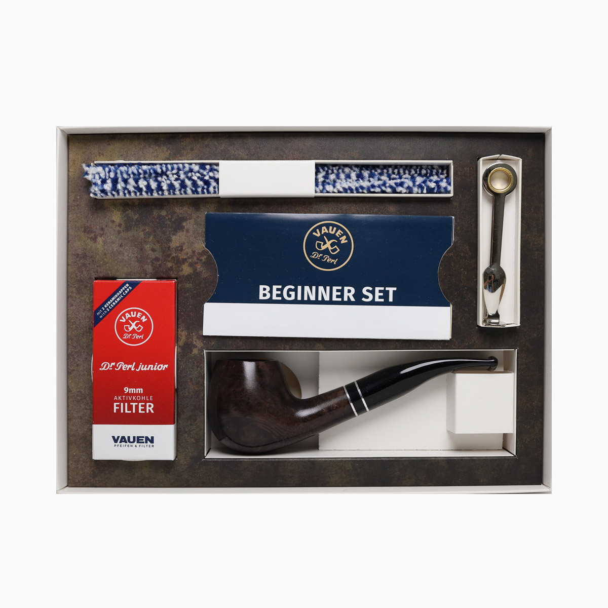 The perfect beginner set for the first steps of pipe smoking in an attractive gift box.