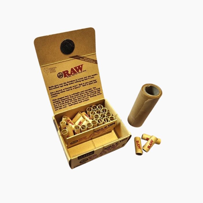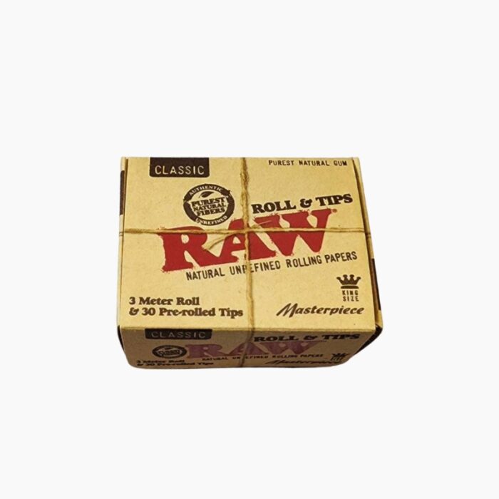 กระดาษ RAW แพคเกจพิเศษสำหรับพกพา ประกอบด้วยกระดาษเป็นม้วน ความยาว 3 เมตร สำหรับตัดความยาวเอง และ ก้นกรองพันสำเร็จแบบสลิม 30 ชิ้น ตัวกล่องออกแบบมาให้มีฝาปิดแม่เหล็ก ส่วนขอบสำหรับวางกระดาษโรล มีรอยหยักสำหรับตัดกระดาษ