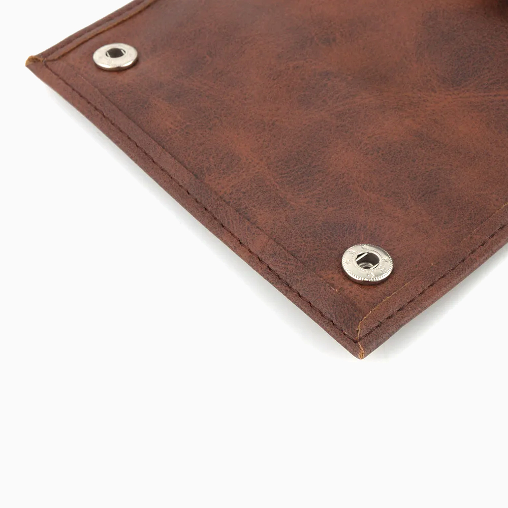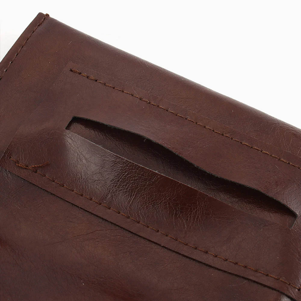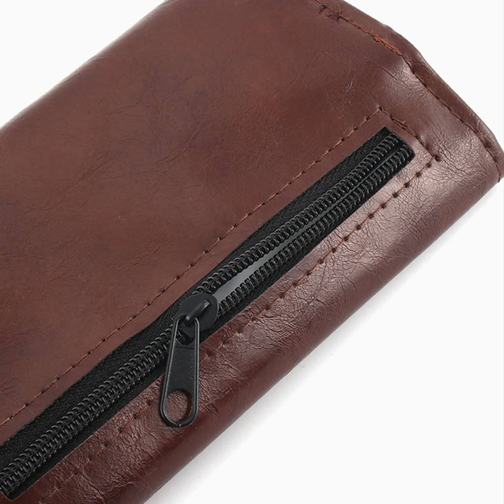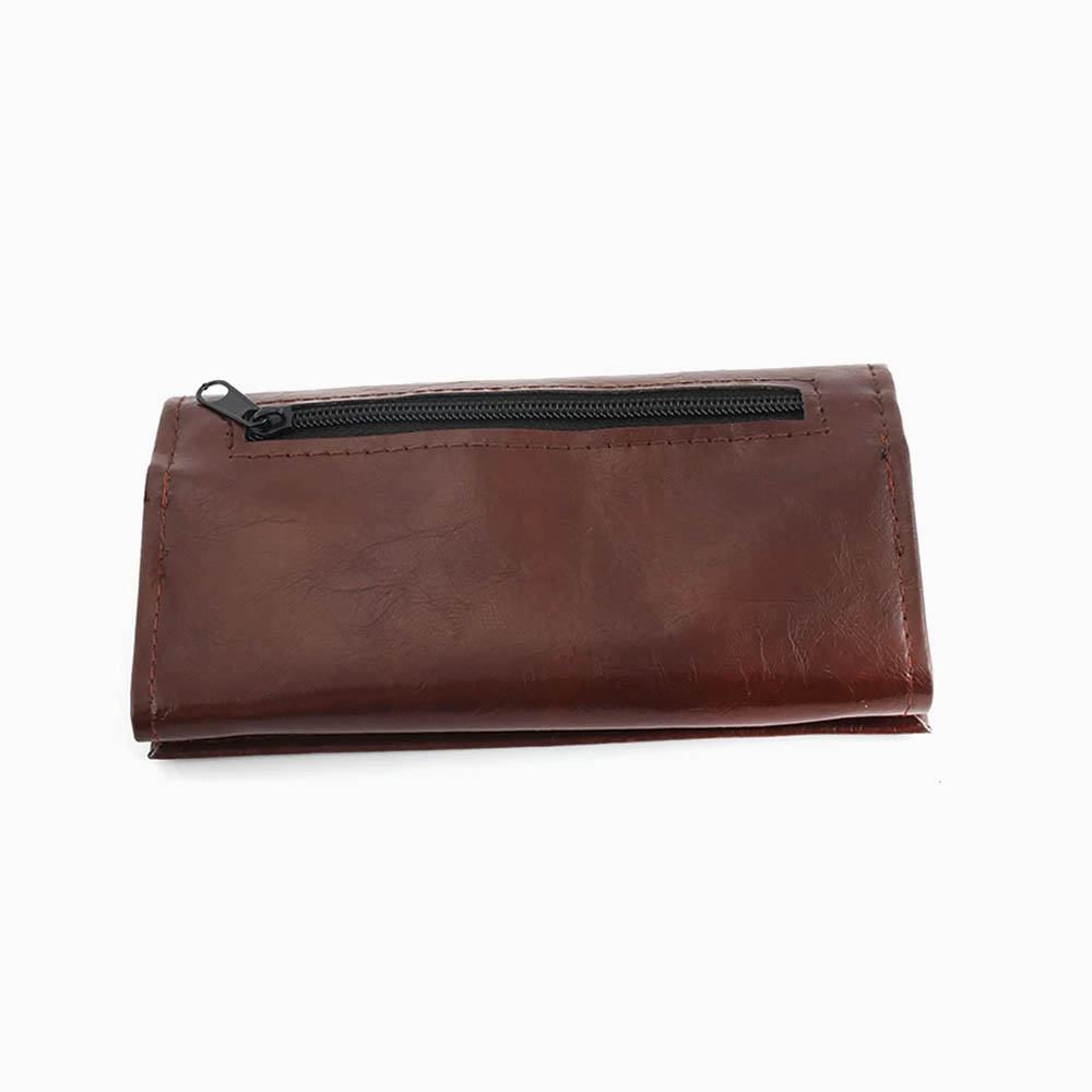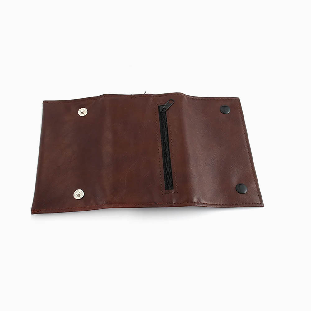 กระเป๋าใส่ยาเส้นสำหรับพกพา ผลิตจากหนัง PU สีน้ำตาล ประกอบด้วยช่องใส่ยาเส้น ช่องใส่กระดาษมวนขนาดความยาว 70 mm. และซิปหลังสำหรับใส่อุปกรณ์